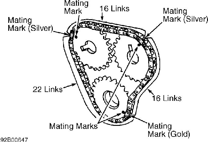 Fig. 8: Aligning Outer Timing Chain Marks Courtesy of Nissan Motor Co., U.S.A.