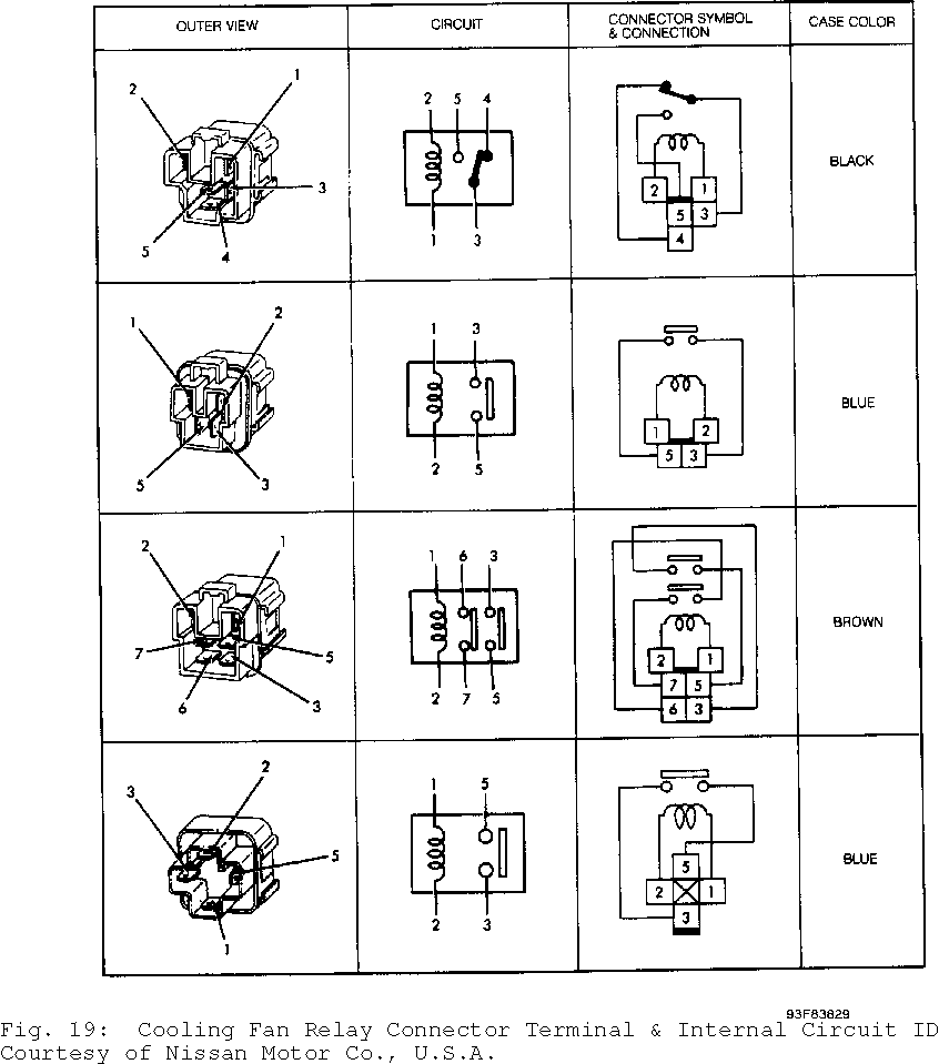 Relays 1) Identify relay type by color. See Fig. 19 Check continuity